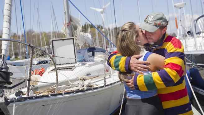 Халифакс, Канада. Финиш кругосветки 21 мая 2014 г. Встреча с дочерью Александрой.